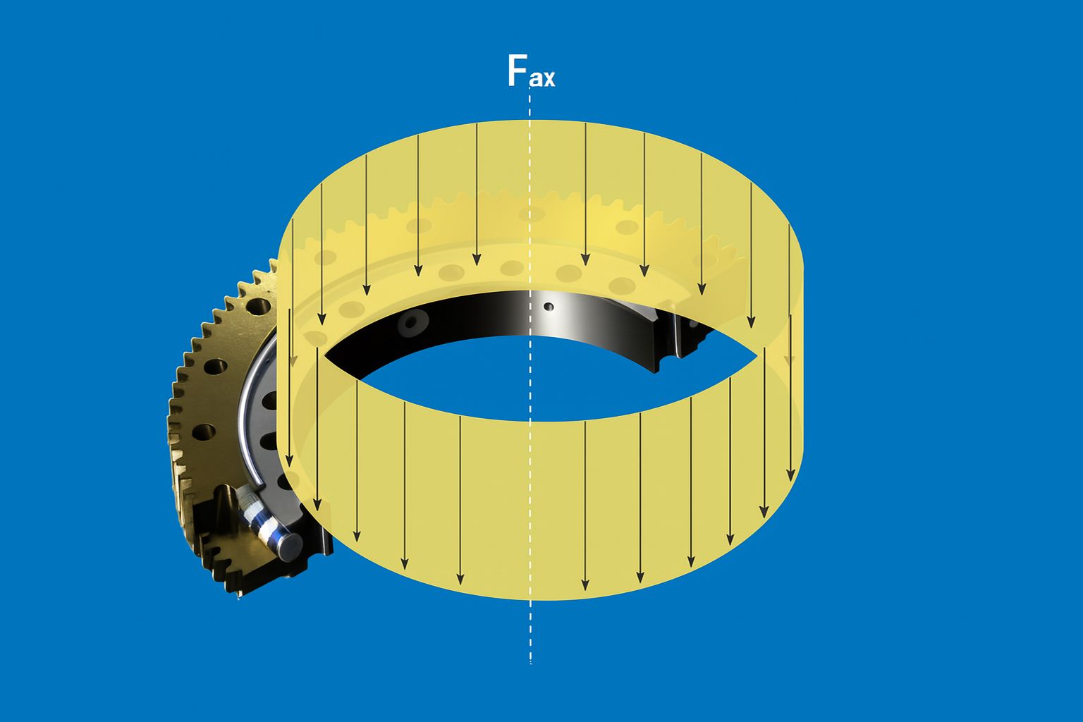 방사 하중이 클 경우 롤러나 볼이 비대칭 하중을 반복적으로 받아 수명 단축이나 정밀도 저하가 발생할 수 있습니다. ③ Axial Load (축 방향 하중)