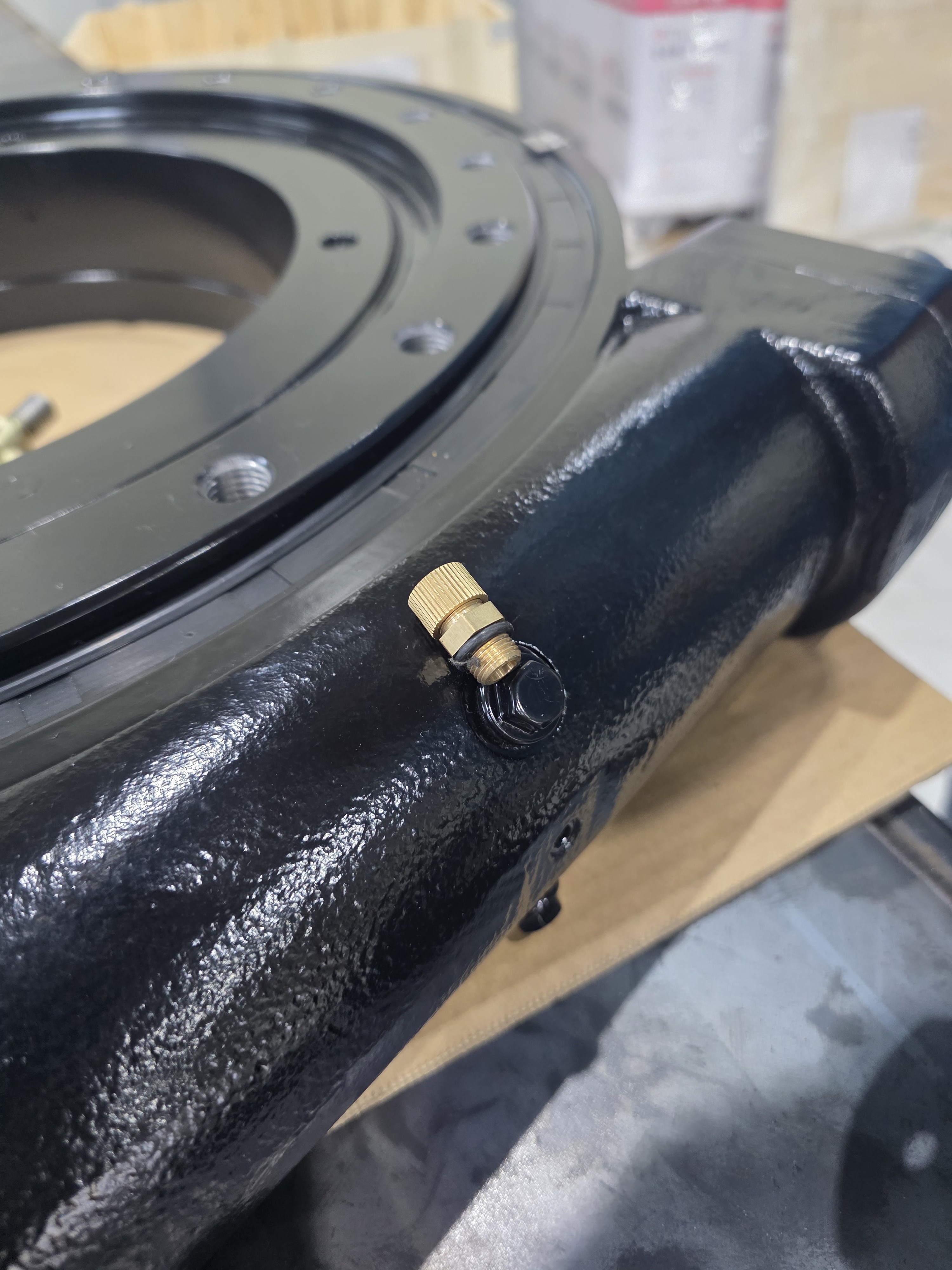 특허 기술 적용: Seal Cover + Breather Hole 구조 Seal Cover – 구리스 과다 주입으로 인한 손상 방지 스윙드라이브는 정비 시 과도한 구리스 주입으로 리테이너(retainer)가 외부로 탈락하거나, 마찰로 베어링을 손상시키는 문제가 발생할 수 있습니다. 이를 방지하기 위해 E-POWER는 특허 Seal Cover 구조를 적용했습니다. Seal Cover의 효과: ✅ 과잉 구리스 유입 차단 ✅ 리테이너 외부 탈락 방지 ✅ 마찰 및 이상 마모 억제 ✅ 제품 수명 연장 및 유지관리 안정성 향상 Breather Hole – 내부 압력 자동 배출 구조 ![]() 또한 스윙드라이브는 회전 시 내부에 열이 발생하며, 기체 팽창으로 인해 압력이 상승합니다. 이러한 환경에서는 Seal이 손상되거나 윤활유가 누유될 수 있으므로, 내부 압력을 자연스럽게 해소하는 Breather Hole 구조가 필수입니다. Breather Hole의 효과: ✅ 내부 기압 자동 조절 ✅ Seal 파손 예방 ✅ 윤활유 누유 방지 ✅ 장비 수명 향상 및 고장 위험 최소화 사진 속 황동 노즐은 단순한 배출구가 아닌, 특허 기술 기반의 '숨구멍'입니다. E-POWER는 이런 작은 부품 하나에도 현장의 실수와 상황을 반영하여 설계합니다. 7. 결론